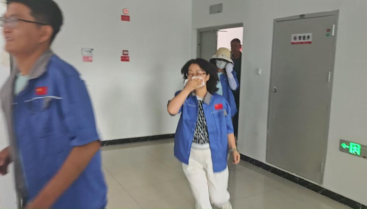 接到疏散指令后,各部門員工在疏散引導組的指引下,用濕毛巾捂住口鼻,低姿彎腰,按照預定的疏散路線快速、有序地撤離至指定的“人員疏散集結點”。